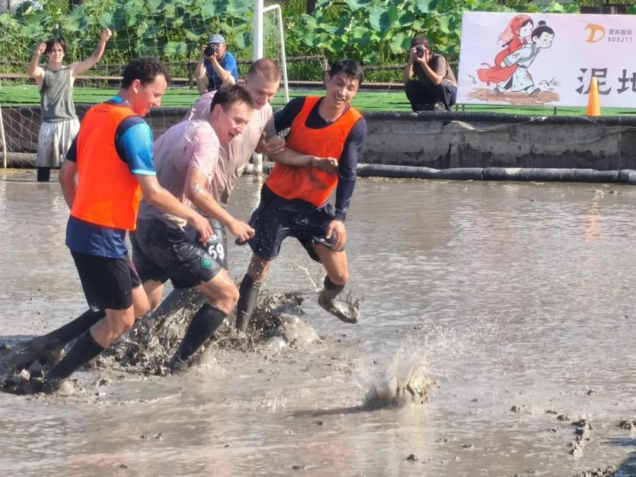 新浜足球公园今年已接待数十家企事业单位,其中跨国企业和机构近20家。这块泥地足球场正从本土走向国际。8月16日举行的赛事“国际专场”中,工作生活在长三角的30余名趣味足球运动外国爱好者,专程奔赴这片专业泥地赛场,在泥泞奔跑翻滚。